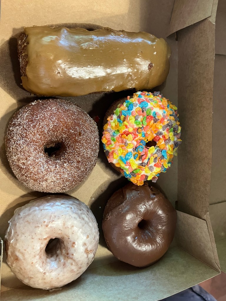 | New Cascadia Traditional (SE Portland) | Fried donuts, bars, and bombs (filled) | Most days they have maple bars, chocolate bars, and a few plant based flavors – rotating special flavors for holidays | Maple bars and plant based donuts are awesome! |