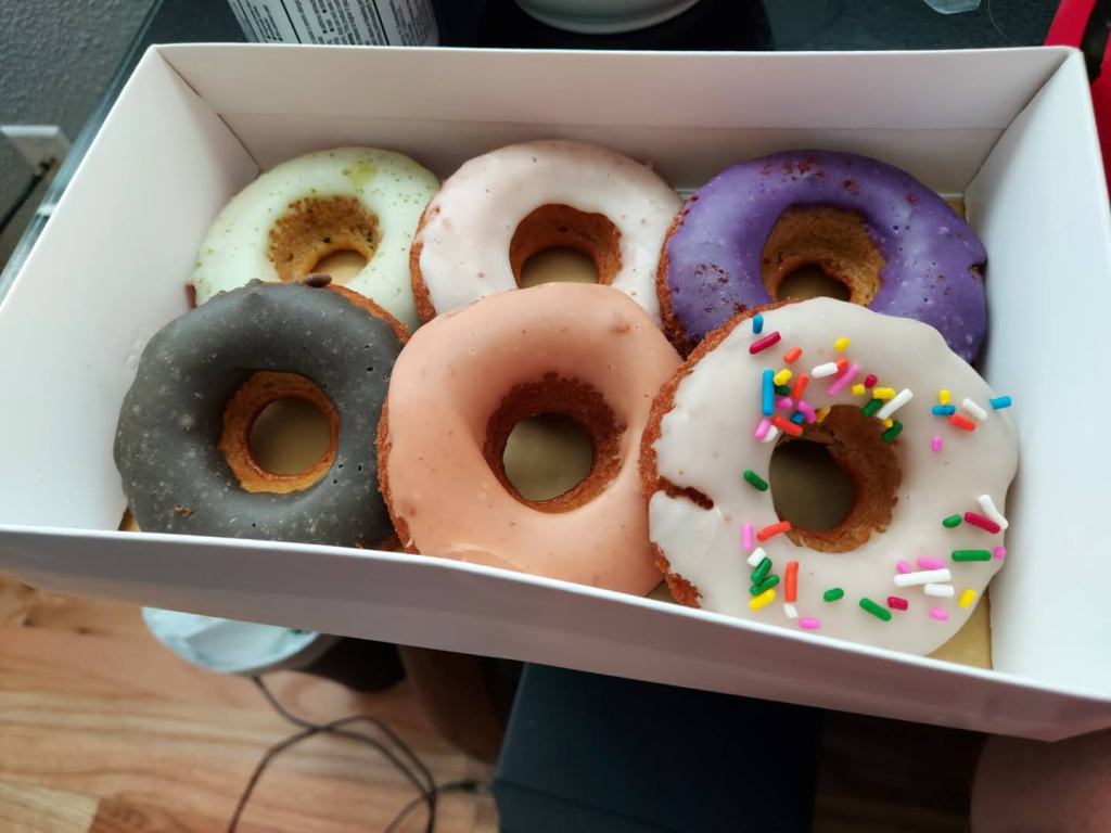 | Kyra’s Bake Shop (NW Portland and Lake Oswego) | Baked donuts | Dairy free available. Rotating flavors | Very dense and “cakey” – good, but more obviously gluten free – not our go-to |