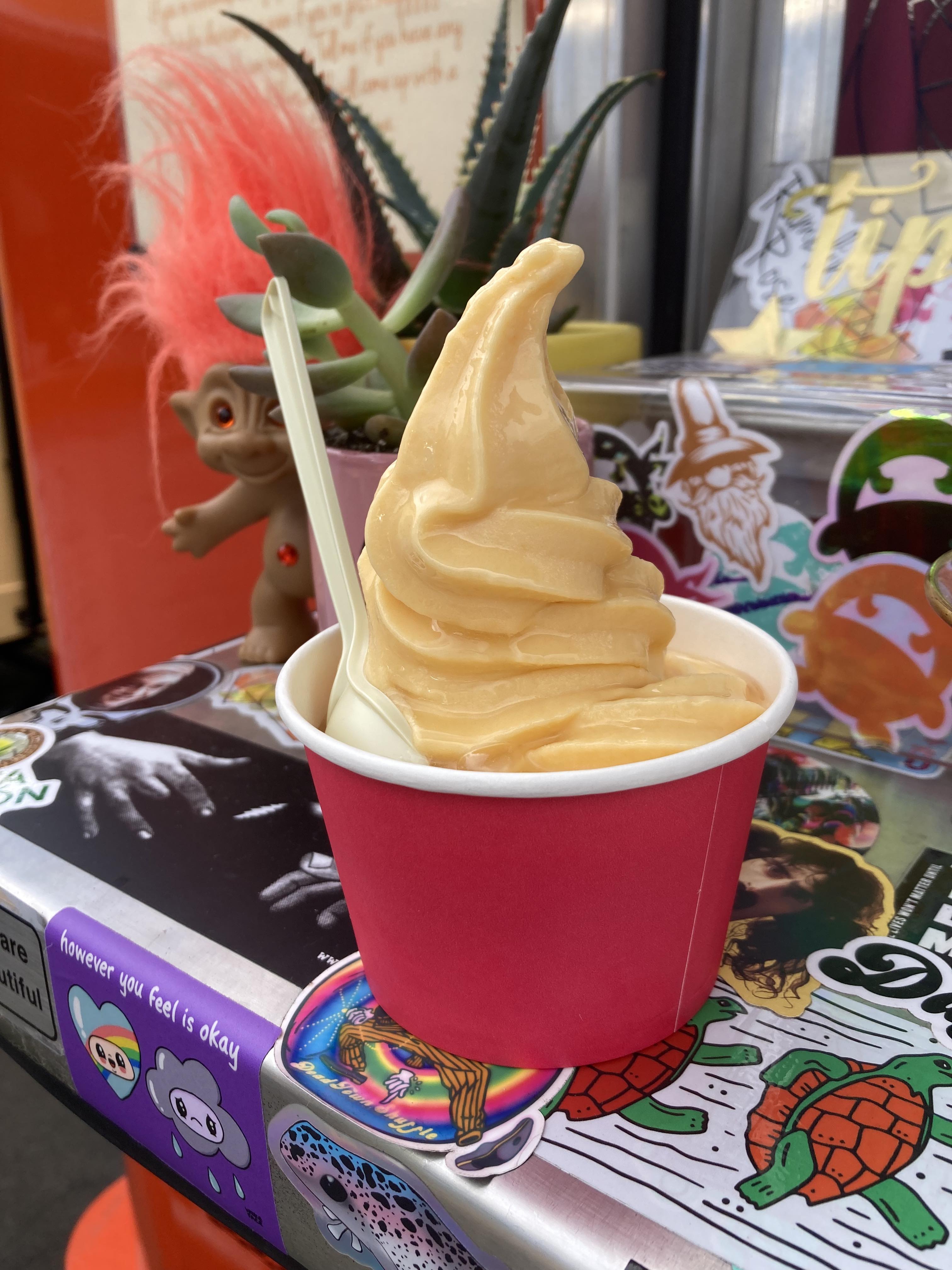 | Eb & Bean (NE & SE Portland) | GF & DF Options | Soft serve, fancy fro-yo | Selection of regular and DF flavors, most toppings are GF, get in a cup |
